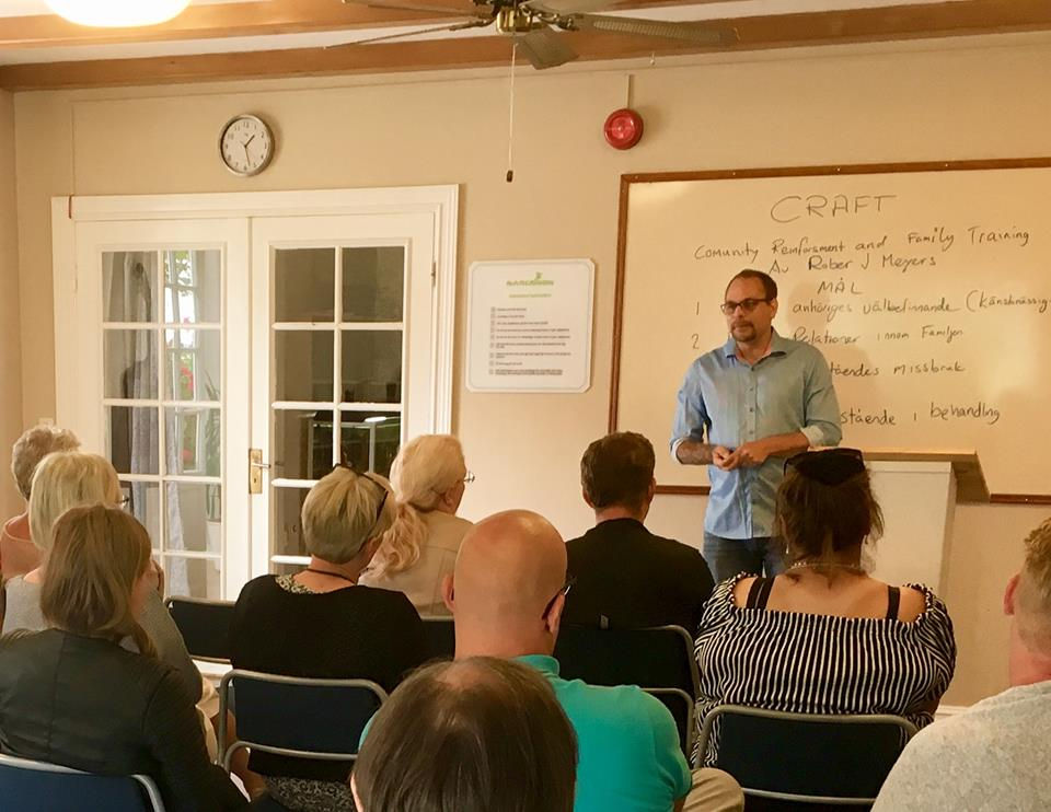 Föredraget var baserat på CRAFT, The community Reinforcement Approach and Family Training. Vi kommer att ha flera föredrag som kan hjälpa anhöriga som står nära en person med någon beroende av alkohol eller droger.